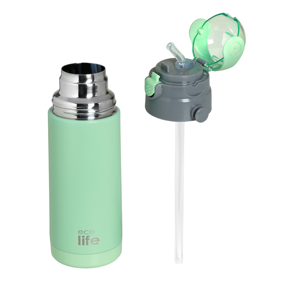Ανοξείδωτο παγουράκι θερμός, με εσωτερικό καλαμάκι & ιμάντα μεταφοράς (βρίσκεται μέσα στο μπουκάλι).